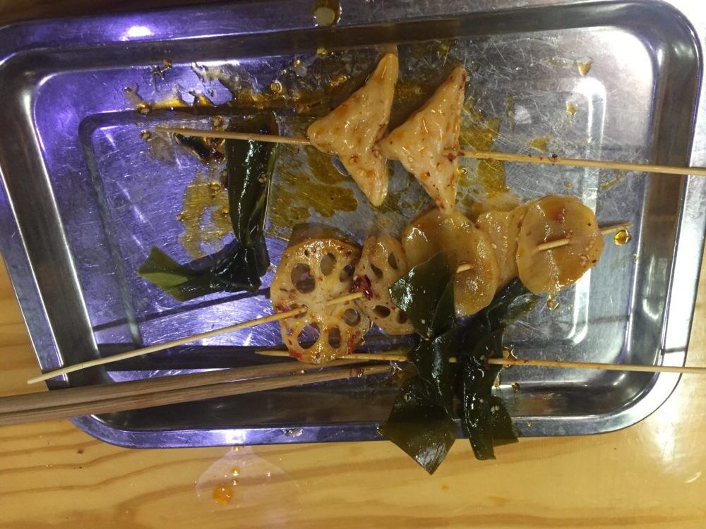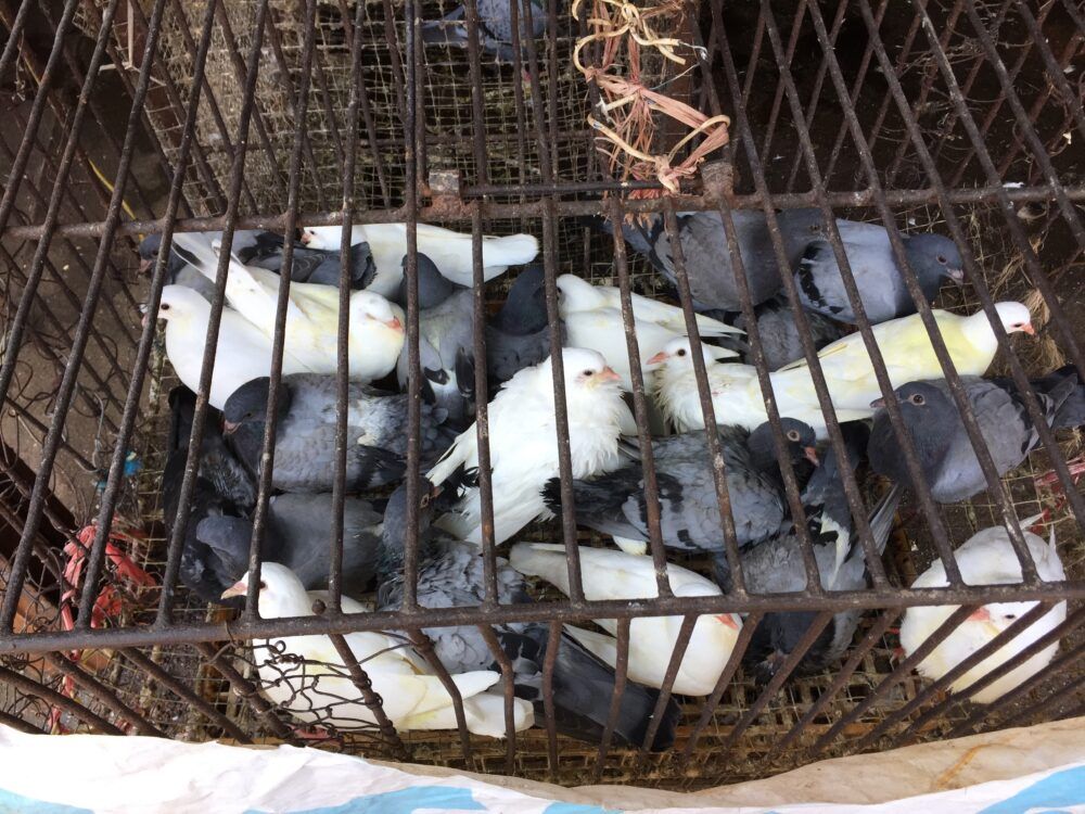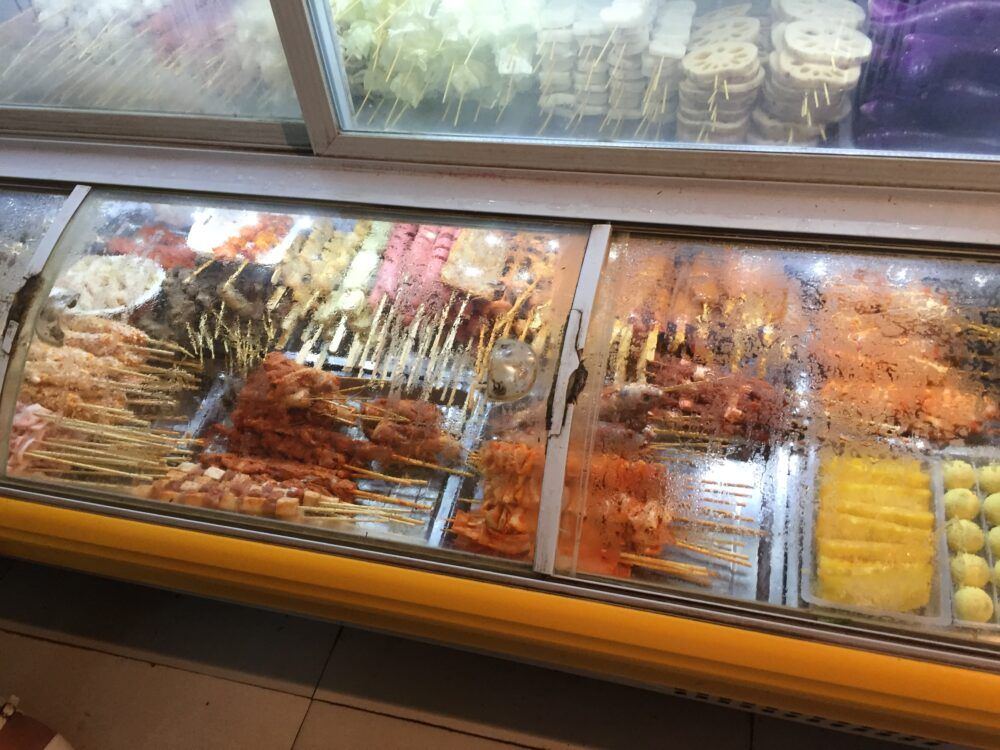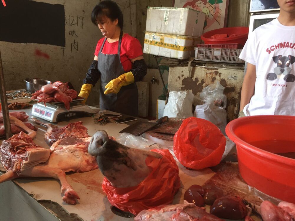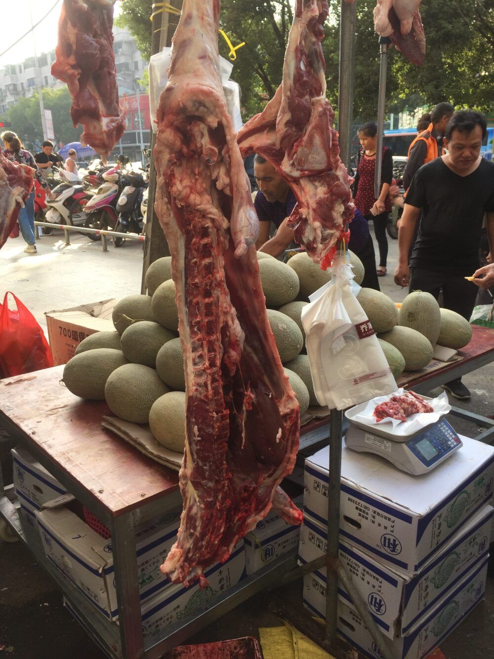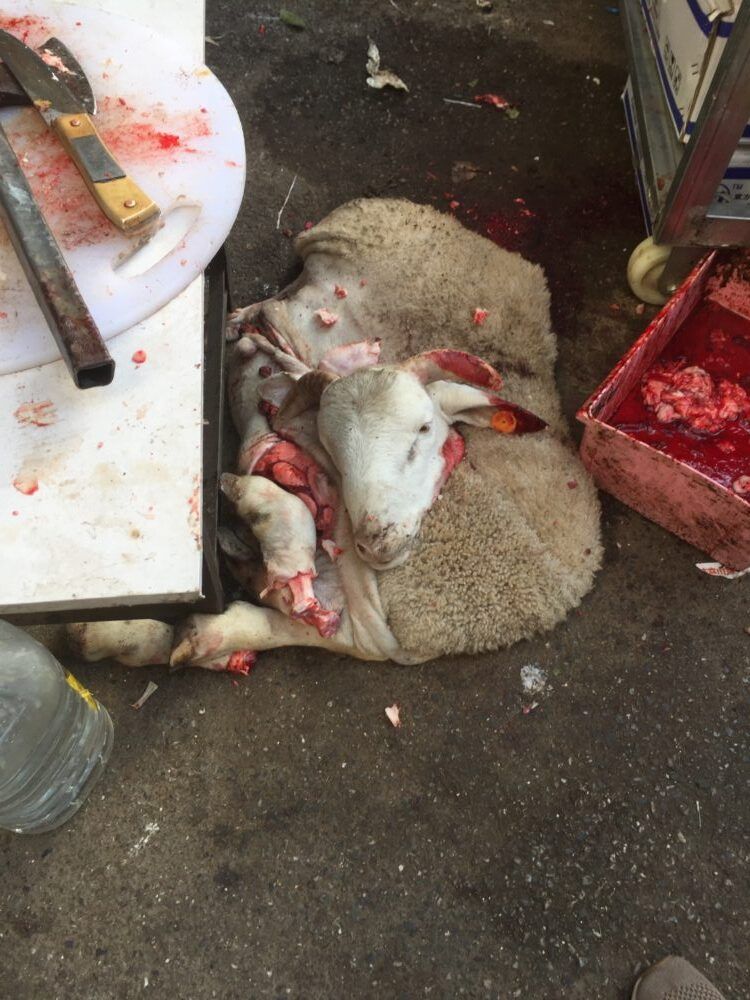 This is the skin and head. The rest of the sheep is hanging. Butchered minutes ago. This fellow walked to the market.