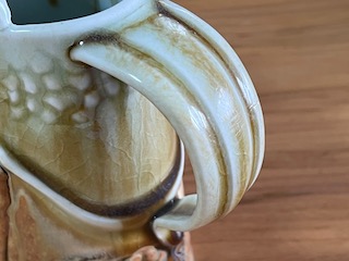 Attachments need to be incorporated into the total design of your work so they look like a necessary and natural part of the whole, not like a clunky, stuck-on, or misplaced lump of clay. Attachments need to be proportioned correctly to fit the scale of the pot; they need to be functional; and they need to stay on, not crack or fall off. They need to be considered before you sit down at the wheel… as part of the whole design process. You can design on paper, or “sketch on the wheel” (as I often do), and discard the losers. But you need to design AND have the technical skill to make it work.