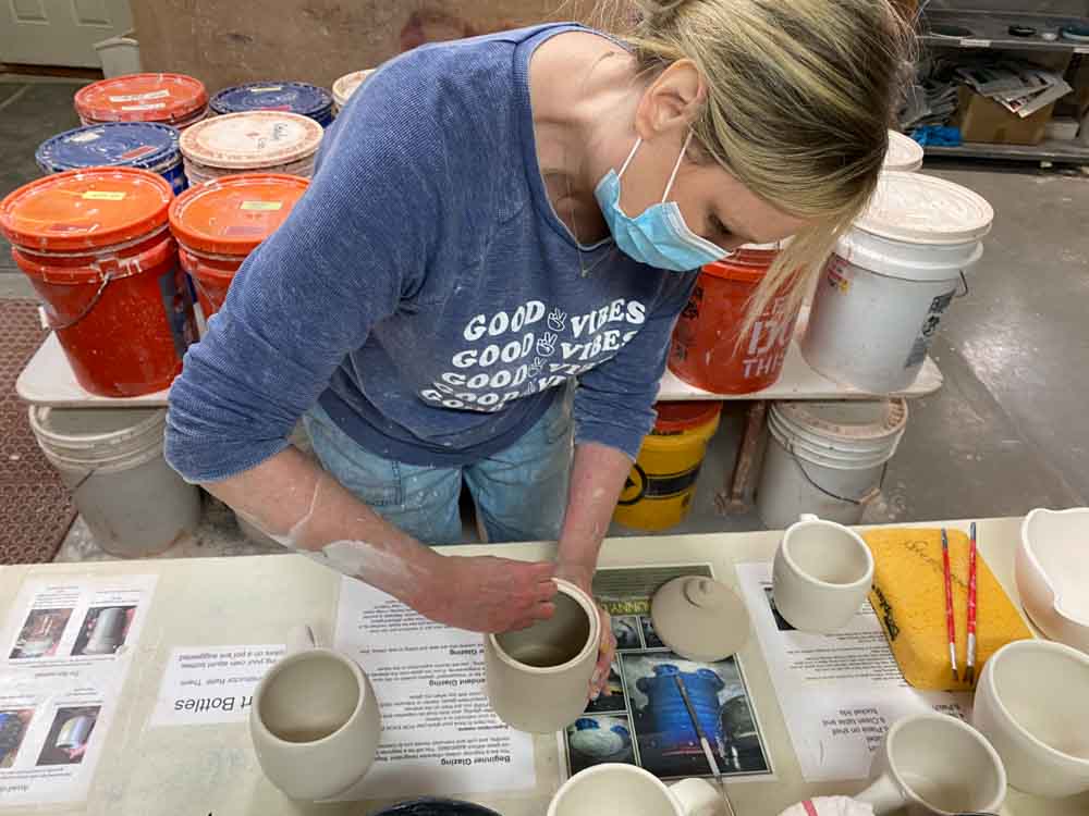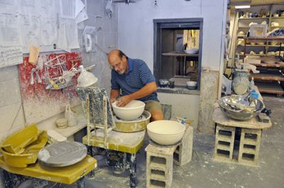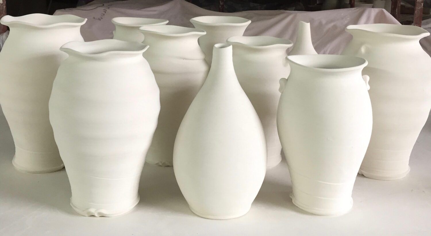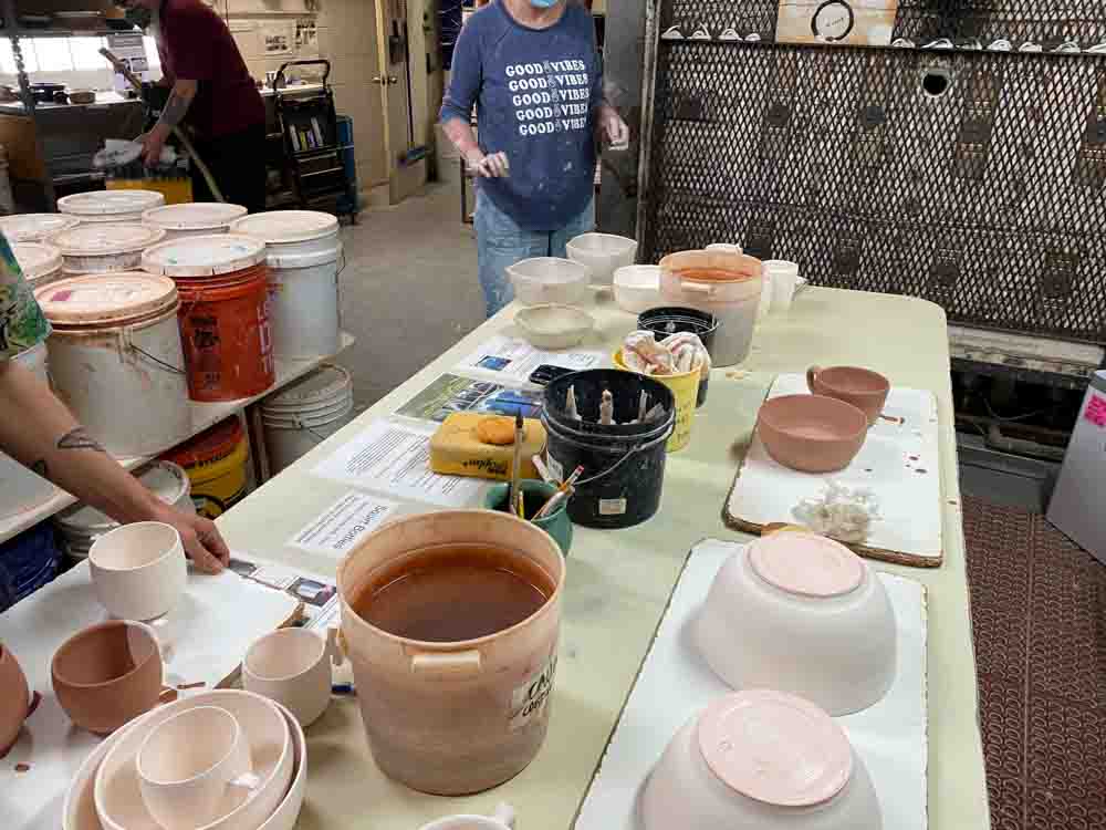 We have lots of wheels because we have classes as well as use the studio ourselves. Throwing pots is one of the most fun things we do.