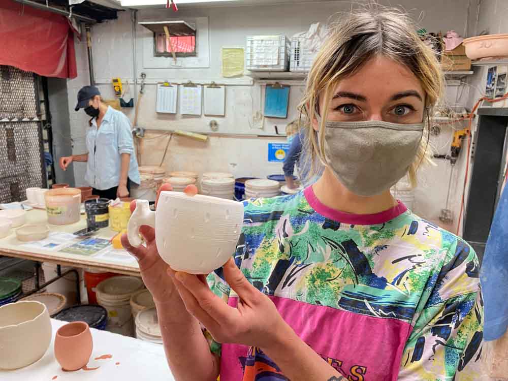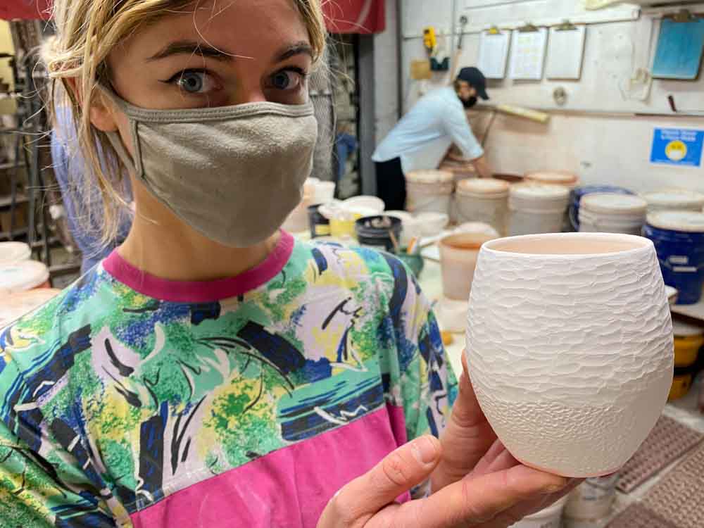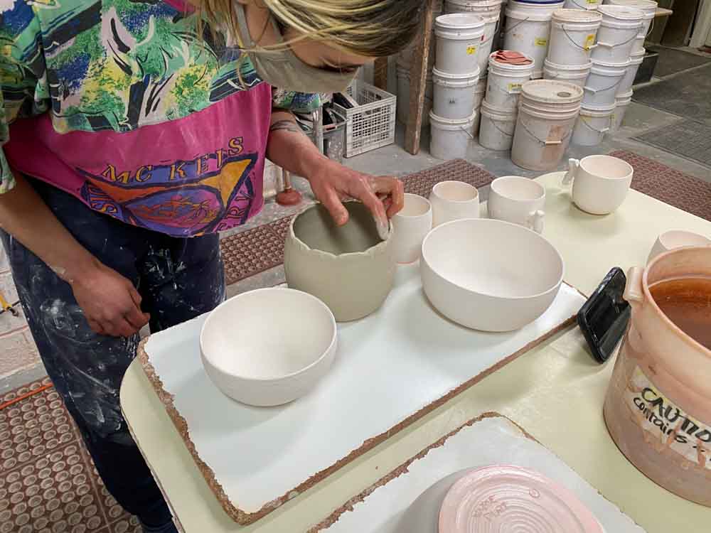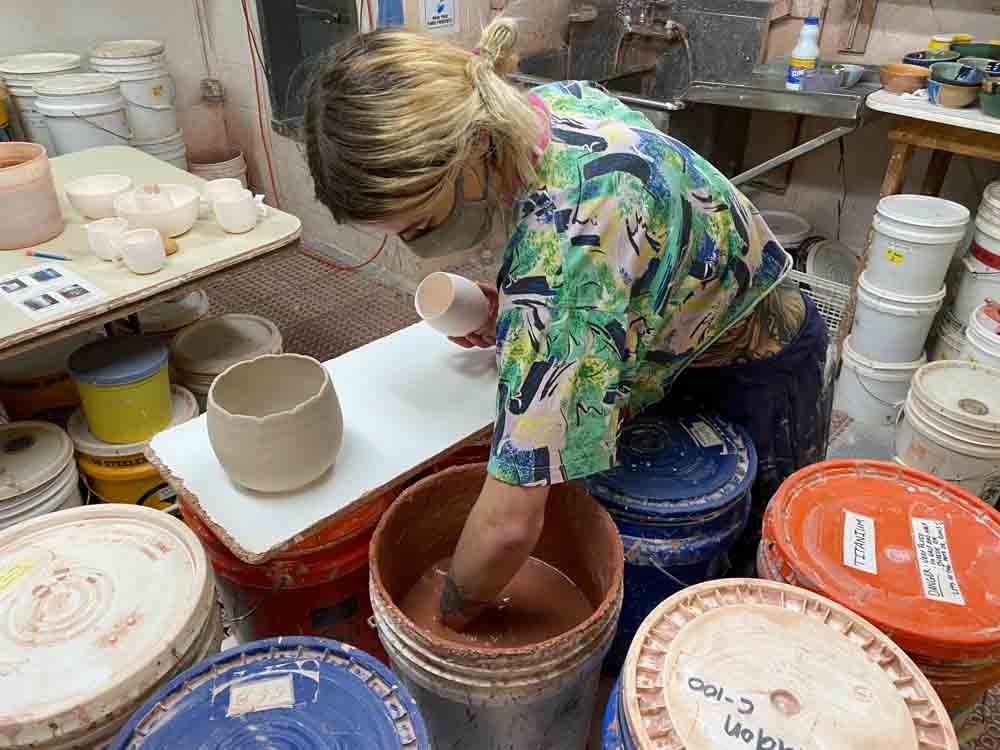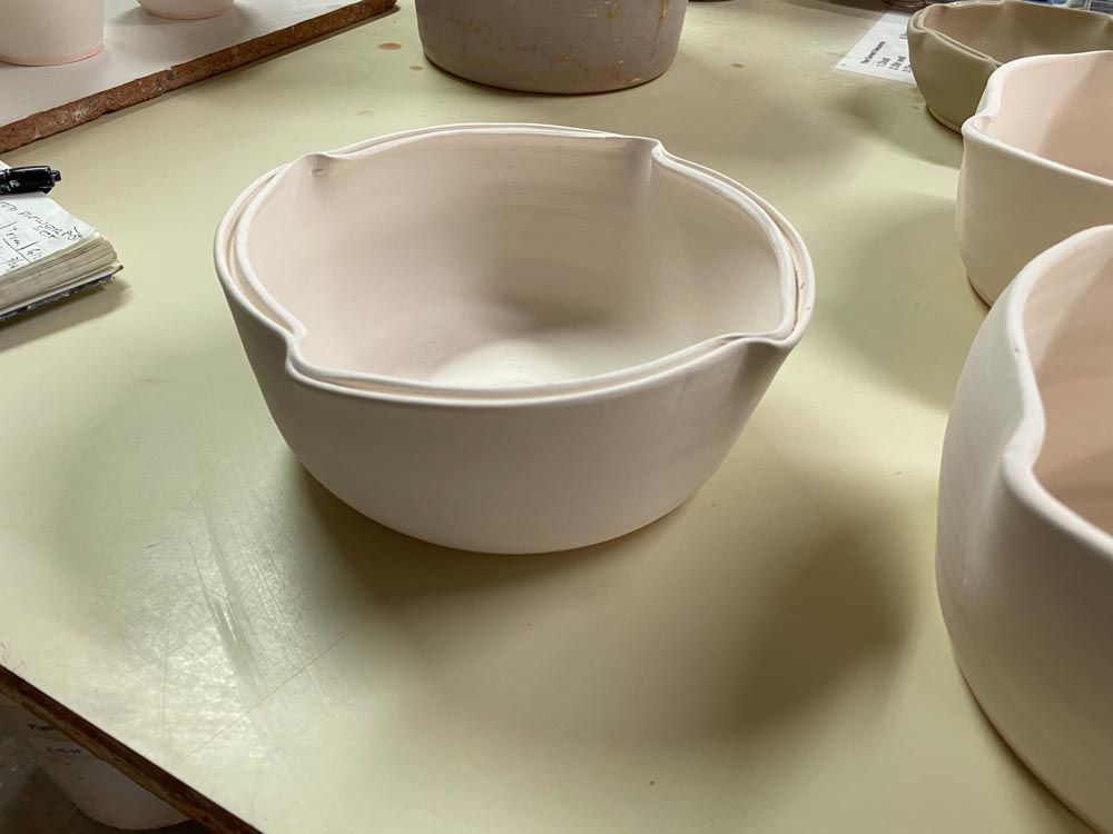 Our kiln holds about 700 pots. We fire every three weeks on average so there is always fresh new work in the gallery.