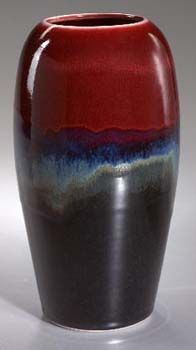 Vase with Copper Red, Chun and Black Glazes 11"
