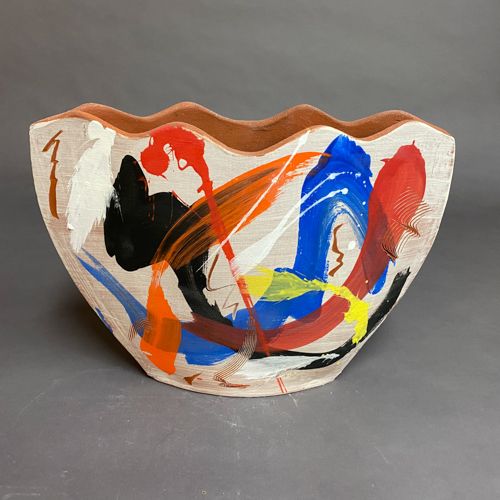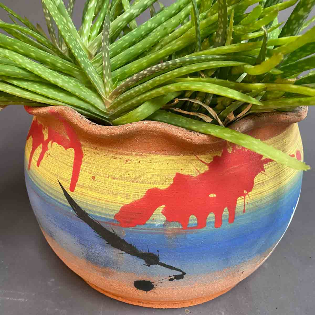 Terra Cotta Planter Decorated with Colored Slips