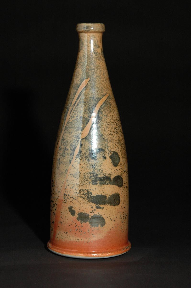 Bottle with Shino Glaze and Brushwork and Hand Print