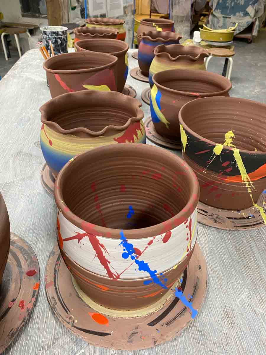 We have over 40 glazes. There are thousands of possible combinations. Finding the right combination for the form and function of the pot is the hard part.