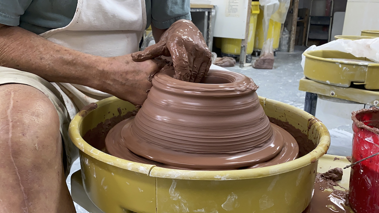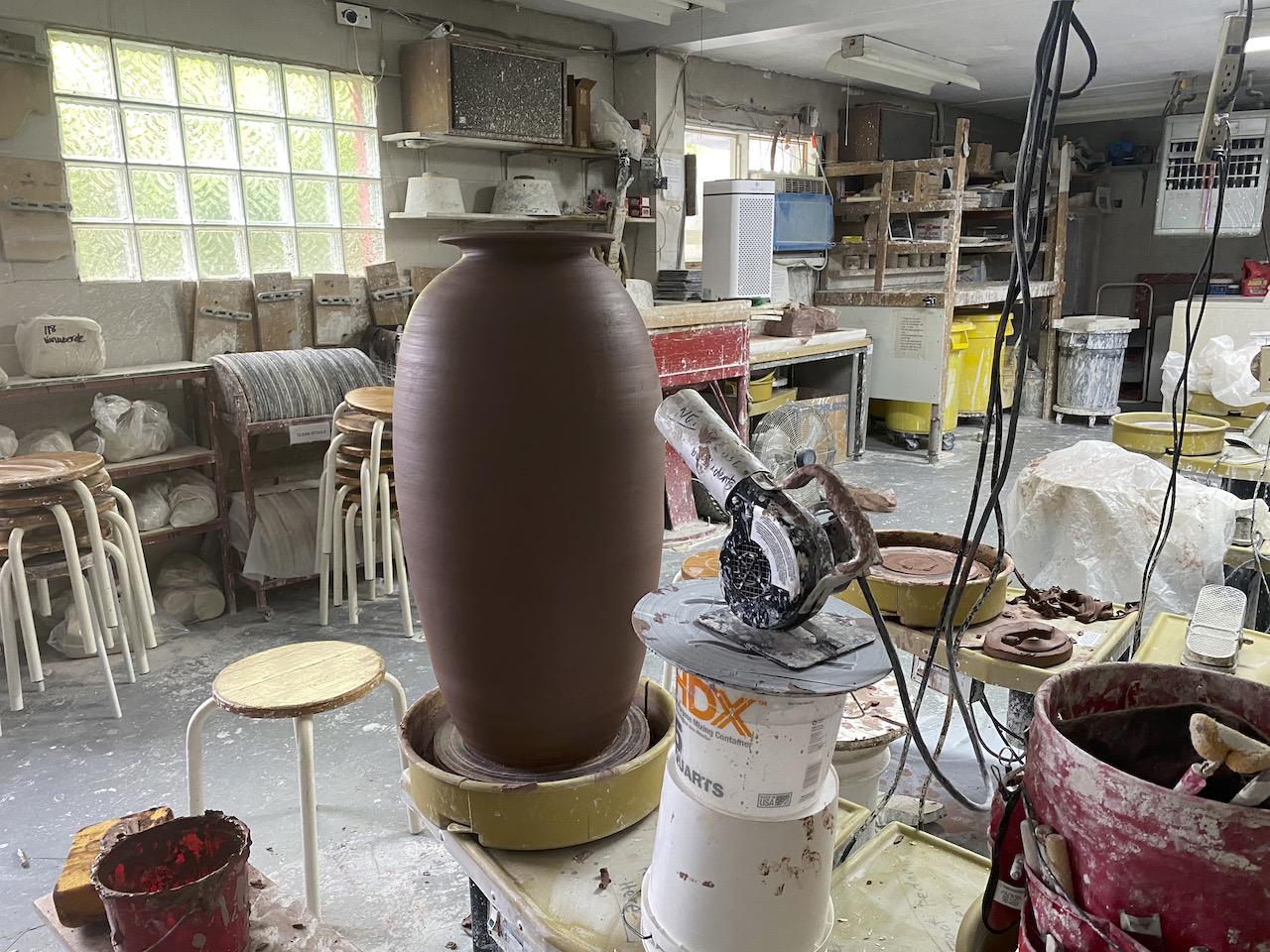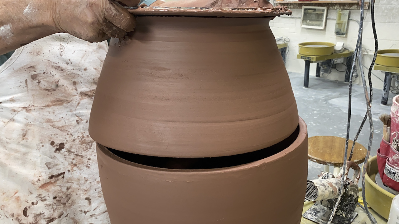 This workshop will deal with making sections, stacking and joining them, and then throwing them together. For example, I often use two sections for the body, and a third for the neck to make a tall vase, lamp or jar.