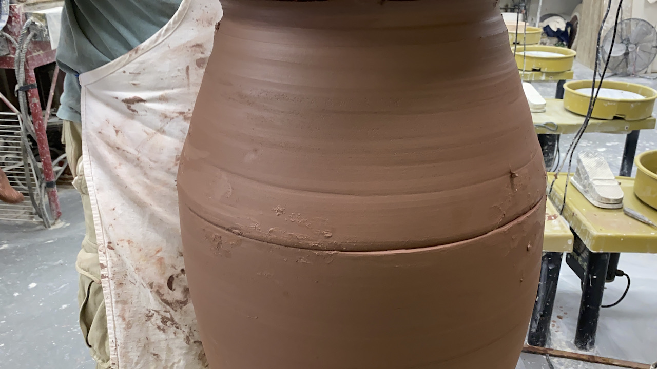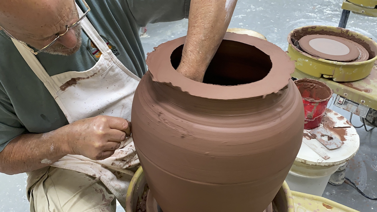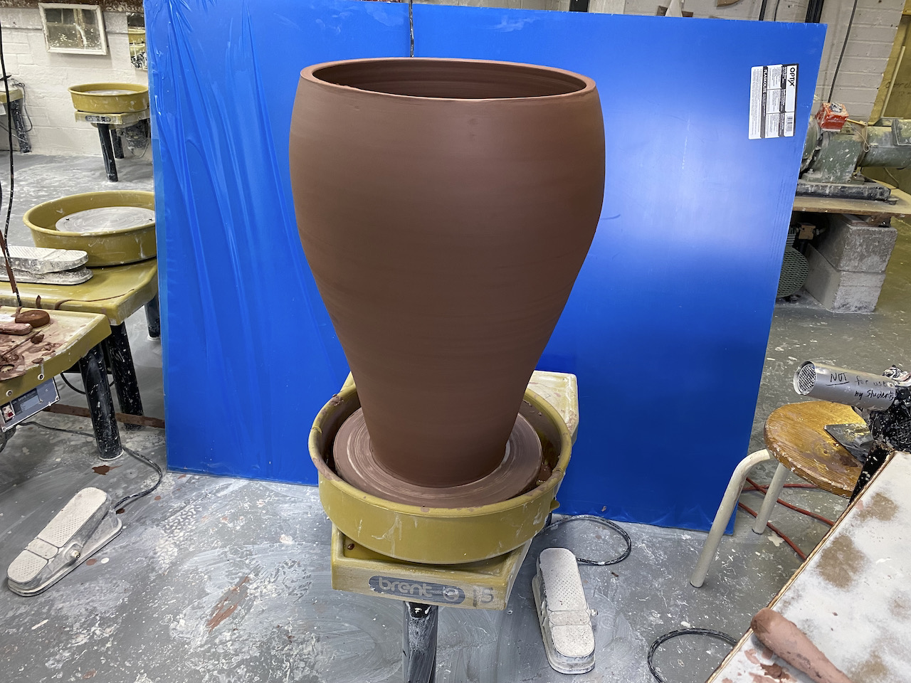 There is a practical limit to how high you can pull up a lump of clay, no matter how many pounds you plunk down on the wheel to start with. One factor is the length of your arm, and there are others, as well. If you want to make a pot over 13 inches tall, one of the best, and easiest ways, is to make it in sections. It is great for shorter pots too. The sections can be thrown and stacked. Another way is to add coils and throw them. Learning the techniques is critical, and so is a good design.