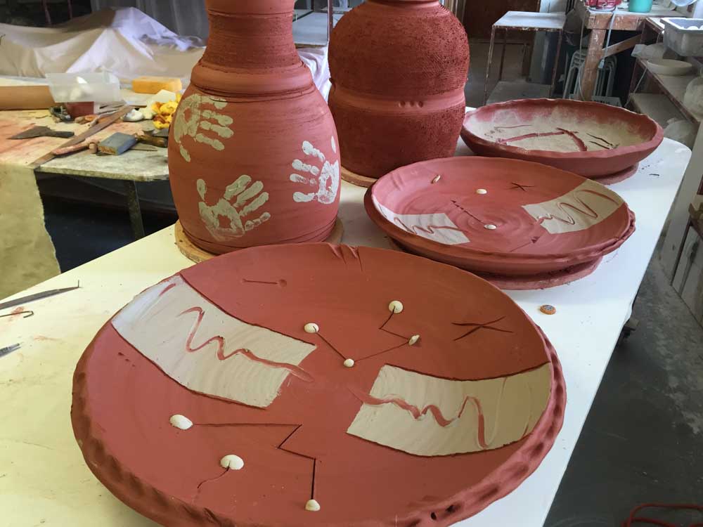 This line of terra cotta wall hangings, sculptures vases and planters was started in 2018.