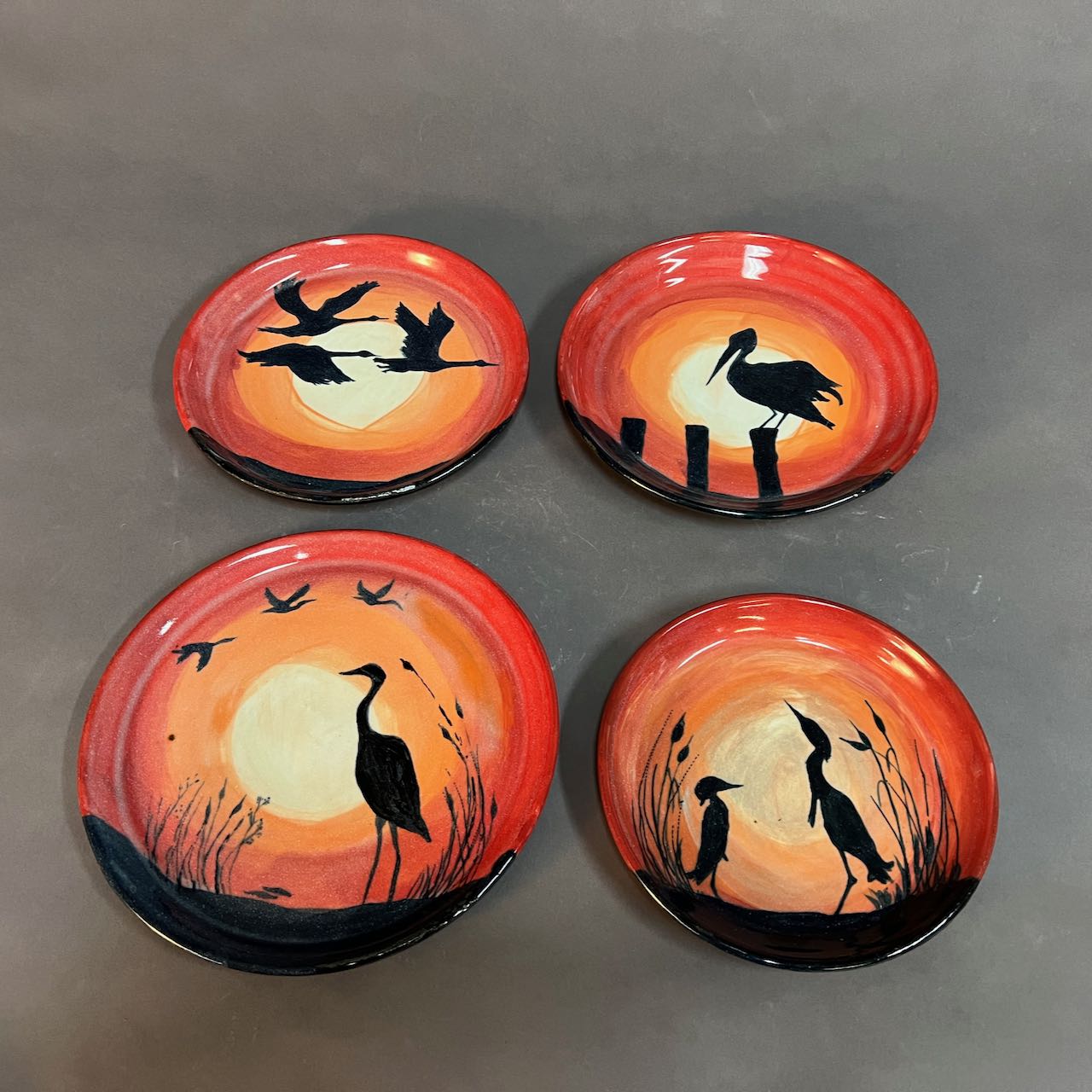 After participating in a hands-on demonstration on how to mix glazes successfully, each attendee will practice what they learned by painting a simple landscape on a slab. Next each artist will begin drawing and painting on their own pieces. Feel free to bring in whatever you prefer – leather hard, bone dry or bisque ware – also favorite brushes, palette knives, etc. Come with an idea of what you want to paint or use what we provide. This could be a simple pencil sketch or a photo.